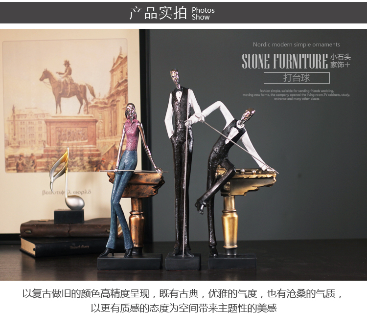 On-time Delivery: If you do not receive your purchase within 60 days, you can ask for a full refund before order completion (when you click "Confirm Order Received" or exceed confirmation timeframe).Hurry! Offers Modern Style Billiards Characters Resin Crafts Ornaments Home Decoration Accessories Figurine Sports Miniature Gift Model