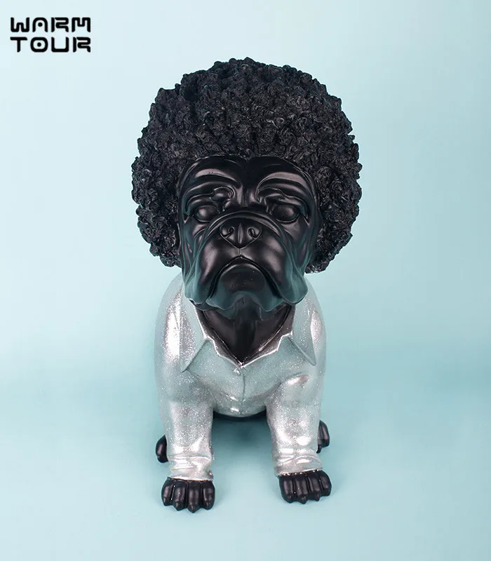 Great Flash Deal Modern Creative Unique Personified Bulldog Figurine with Curling Hair Design Dog Ornaments Lovely Dog Decorative Articles by orochimaru Rating: 5 out of 5