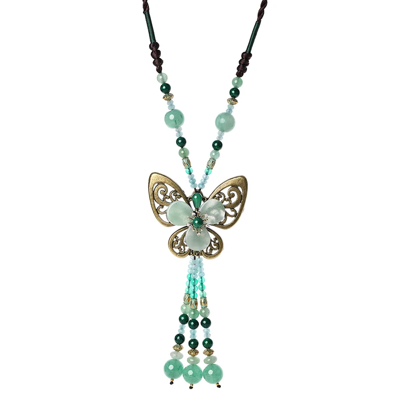 Sweater chain Butterfly ornaments accessories pendant green female vintage ethnic necklace ornaments--------------------------------------------------------------- -