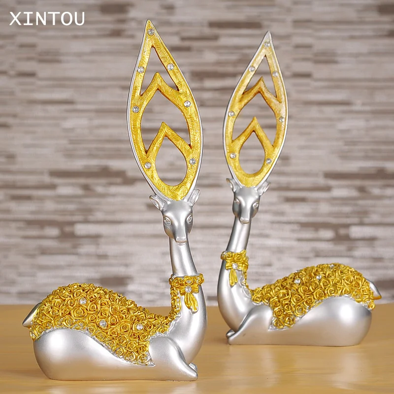 XINTOU Gold Resin Sika Deer Sculpture Modern Europe Creative Animal Statues For Home Decor Wedding Table Decoration Ornament