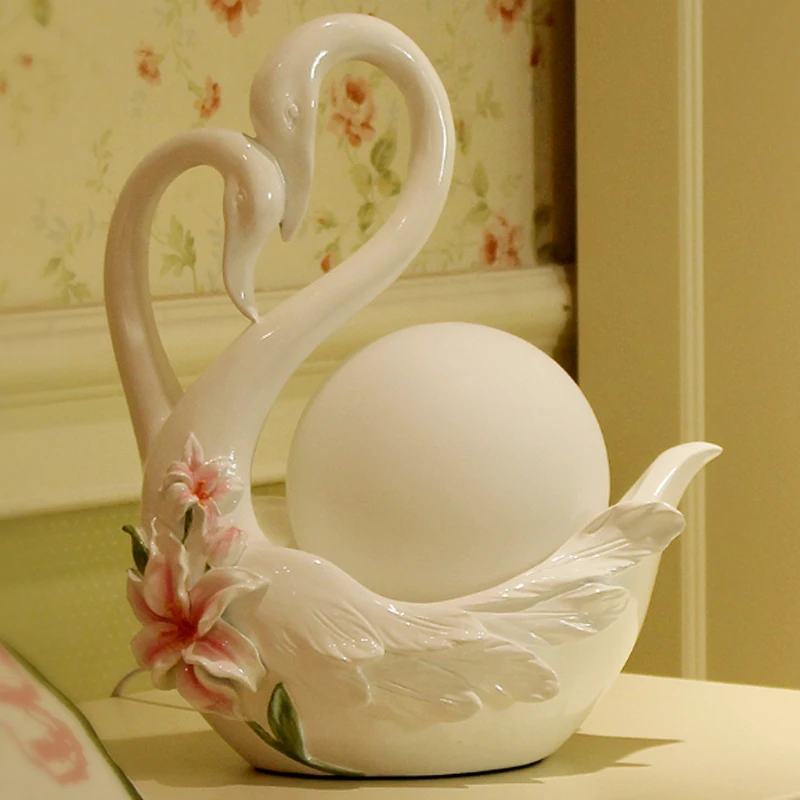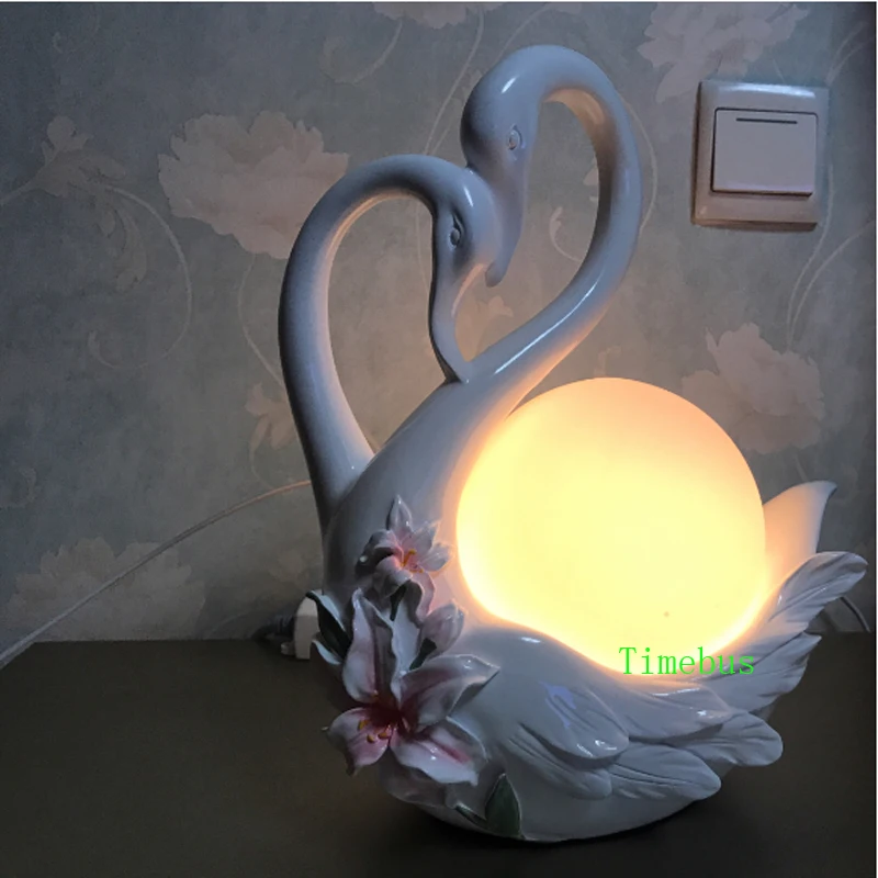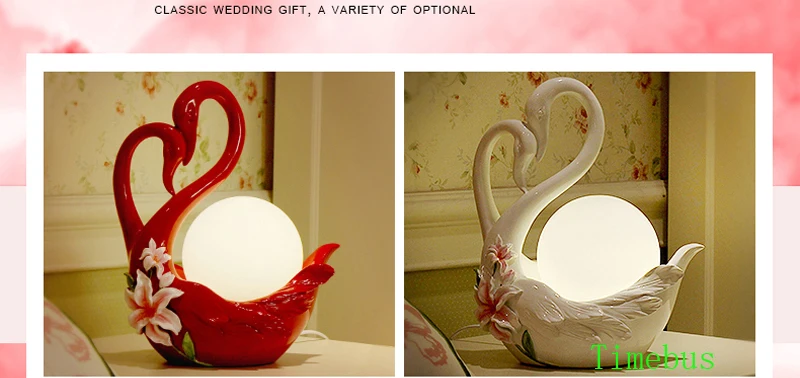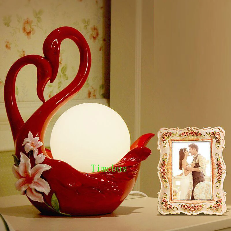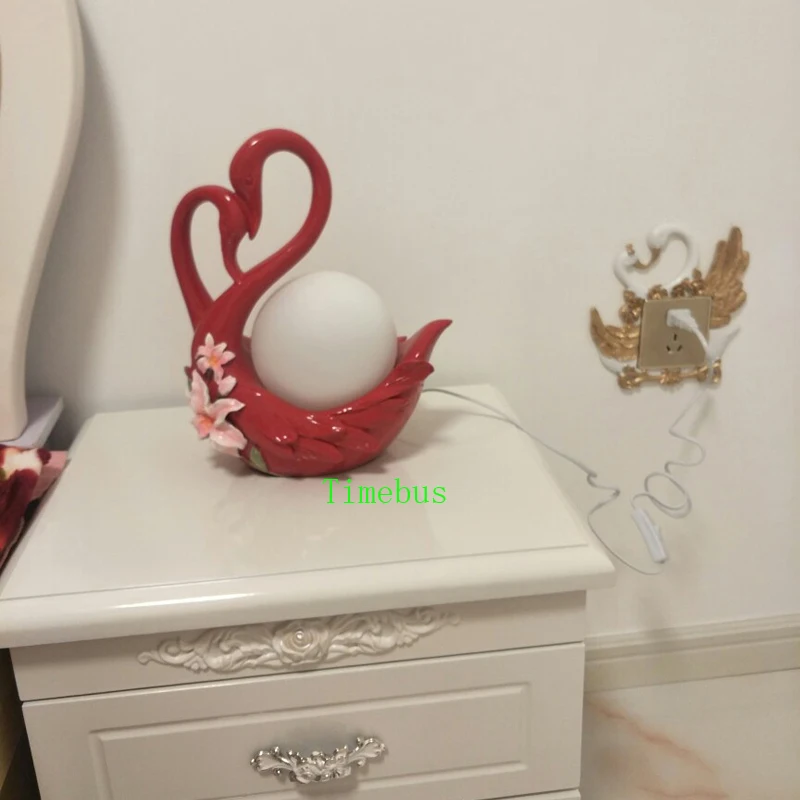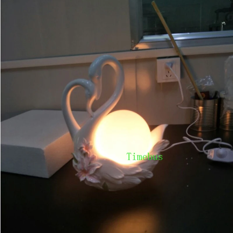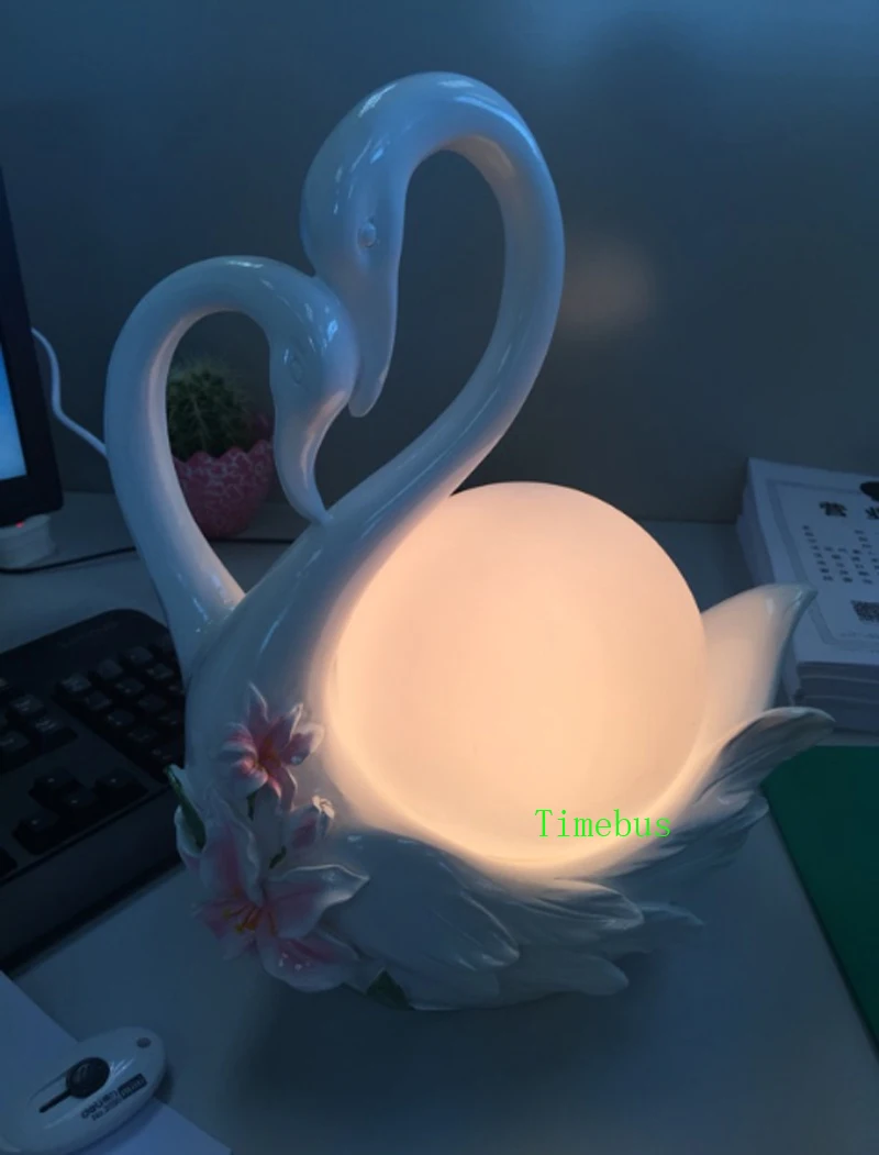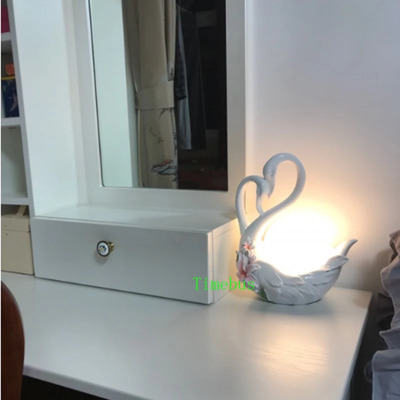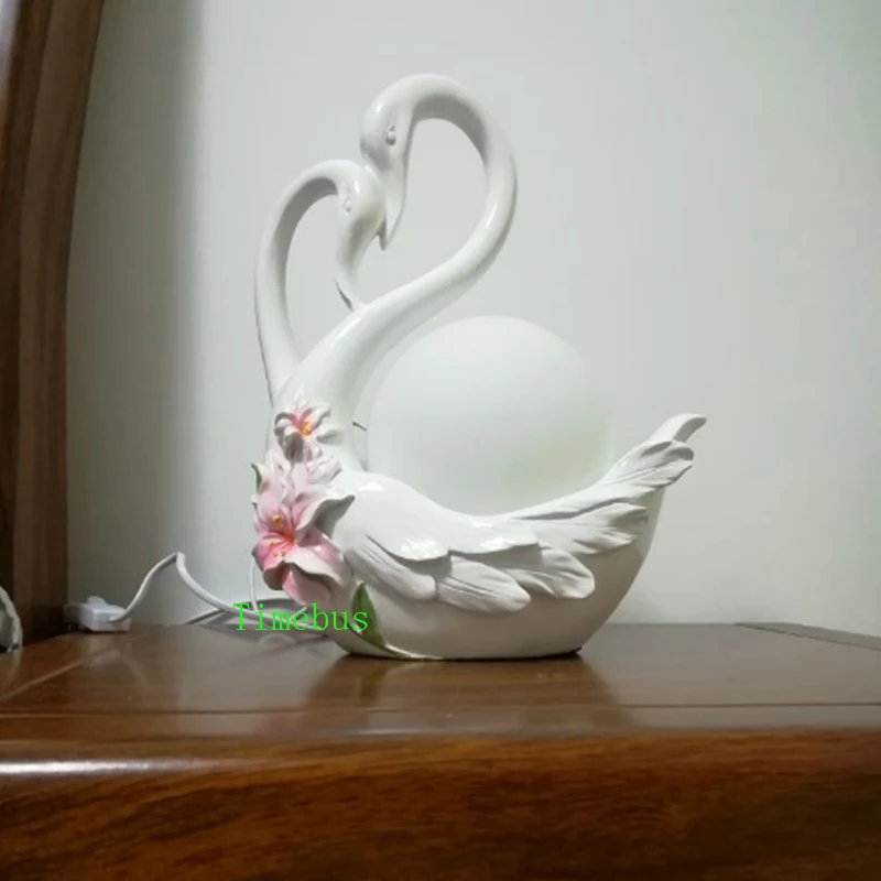 On-time Delivery: If you do not receive your purchase within 60 days, you can ask for a full refund before order completion (when you click "Confirm Order Received" or exceed confirmation timeframe).Fantastic Promotion High-end decorative Table Lamp Wedding Light Wedding Swan Ornamental led Desk Lamp Bedroom Resin Table Lamp Staine Glass Light
